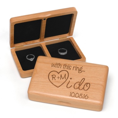 A great modern way to have the ring bearer carry your wedding ring down the aisle. This wooden "With this ring...I do" box is a unique and romantic way to present your rings at the ceremony. The box is engraved with your custom personalization.